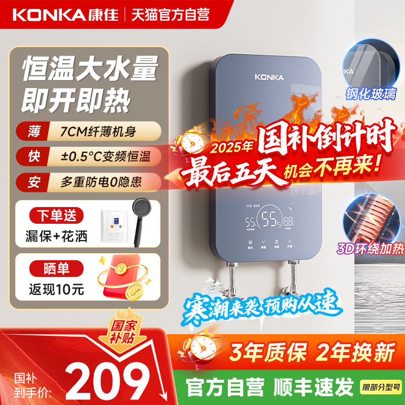 康佳即热式电热水器新款家用恒温变频卫生间洗澡速热理发店补贴01