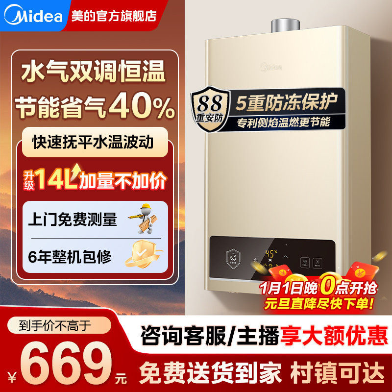 美的燃气热水器节能恒温14/16升天然气家用洗澡HWA官方旗舰店正品