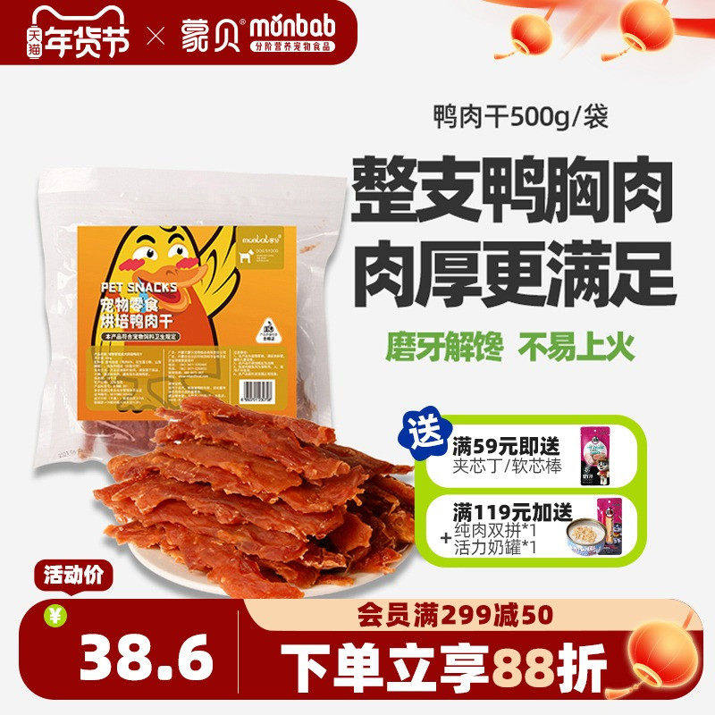 蒙贝狗狗零食鸭肉干500g中小型犬幼犬泰迪磨牙棒宠物零食训犬奖励
