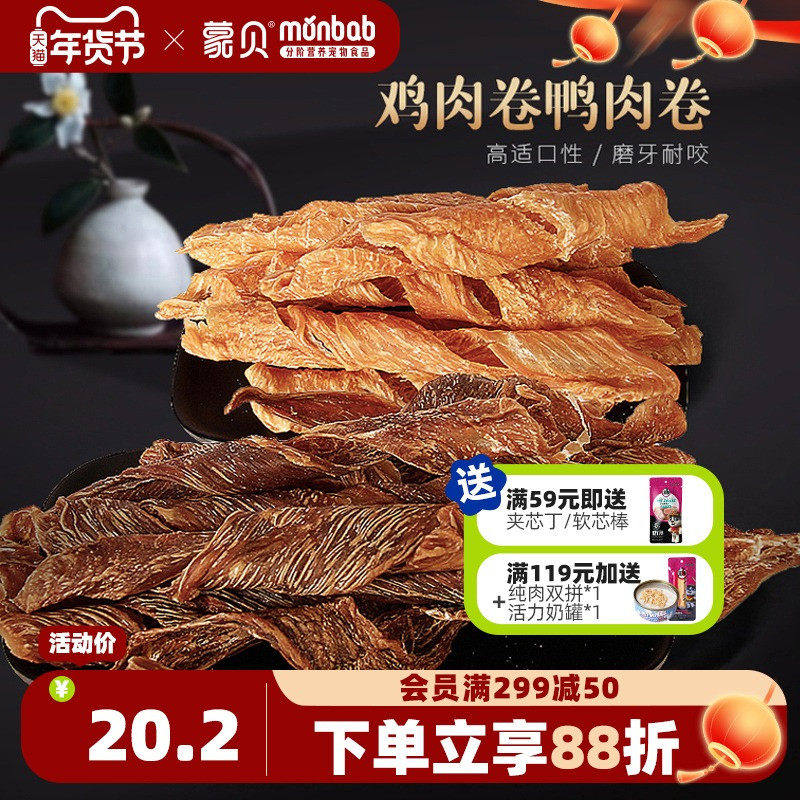 蒙贝狗狗零食鸡鸭肉卷宠物零食中小型幼犬泰迪磨牙棒训犬鸡鸭肉干