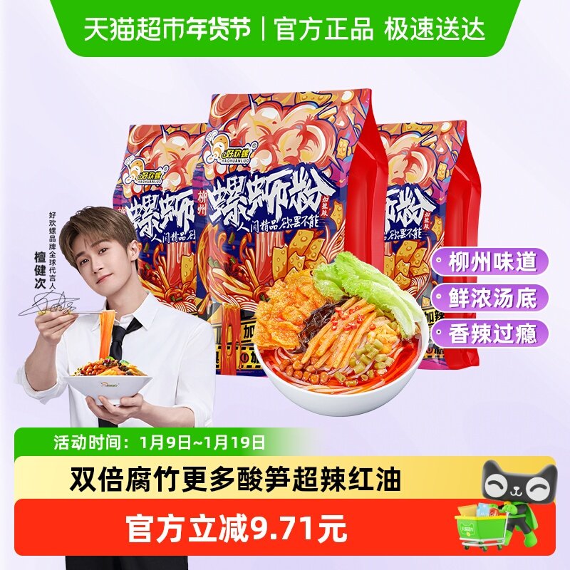 好欢螺螺蛳粉加辣加臭400g*3袋广西特产柳州正宗螺丝粉宵夜米粉