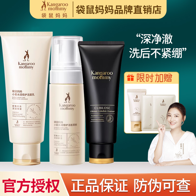 袋鼠妈妈洗面奶准孕妇专用护肤品官方正品茶树小麦燕窝大米洁面乳