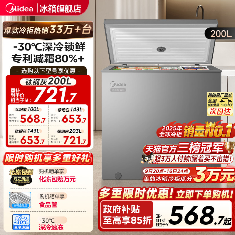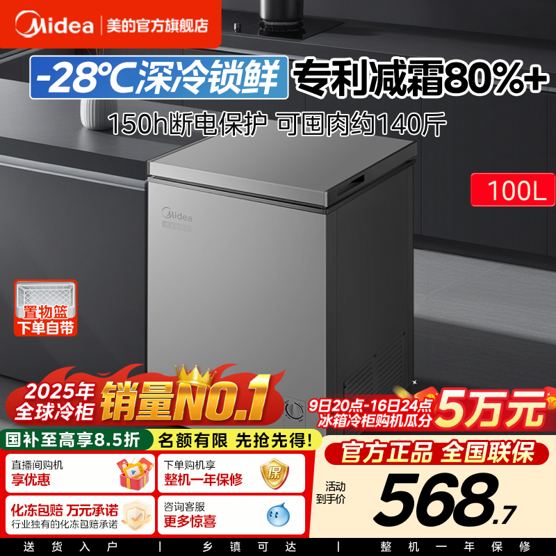 美的100/143/200L冰柜家用小型冷柜冷冻冷藏一级母乳冰箱官方旗舰