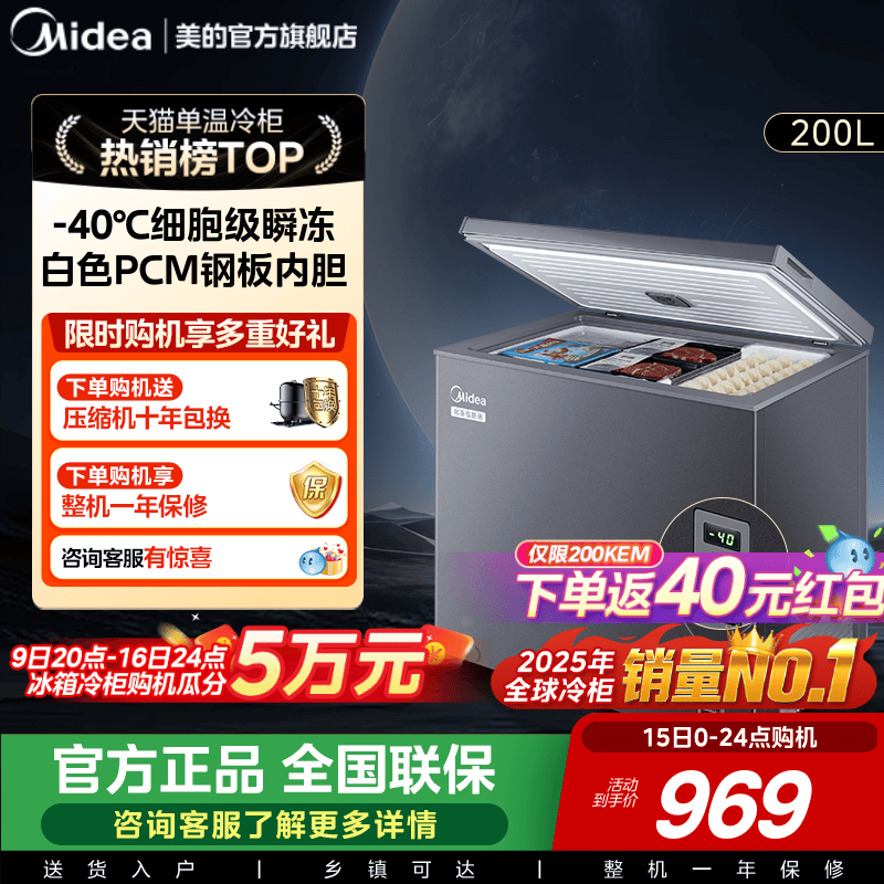 【-40℃】美的100/200升超低温冰柜家用小型冷冻冷藏一级冰箱冷柜