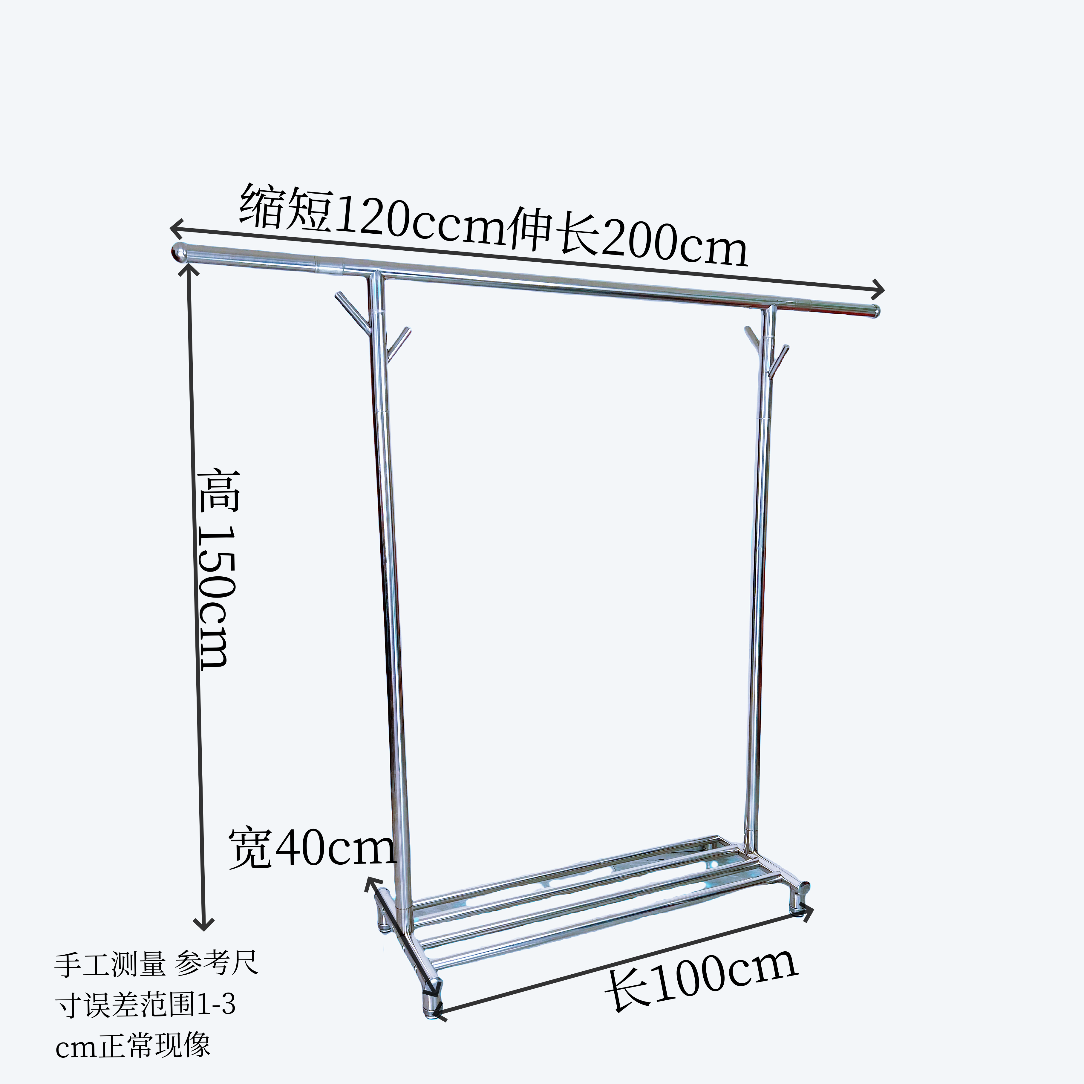 服装店展示架陈列不锈钢落地式衣架女装店专用货架移动挂衣架带轮