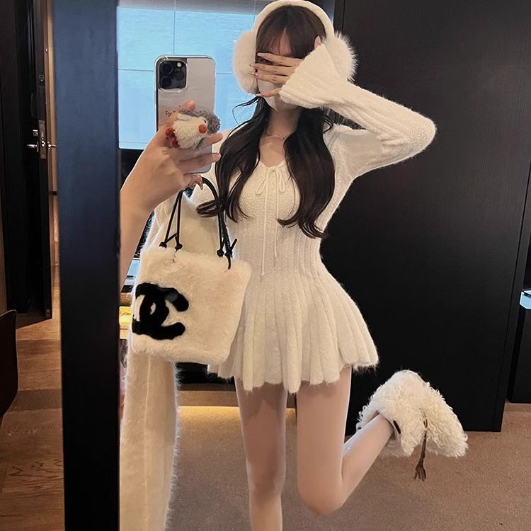 2025气质纯欲短裙长袖针织蛋糕连衣裙修身显瘦辣妹穿搭蓬蓬裙礼服