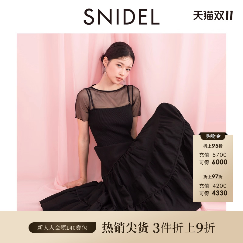 SNIDEL春夏款甜美针织拼接吊带收腰蓬蓬连衣裙SWNO242157