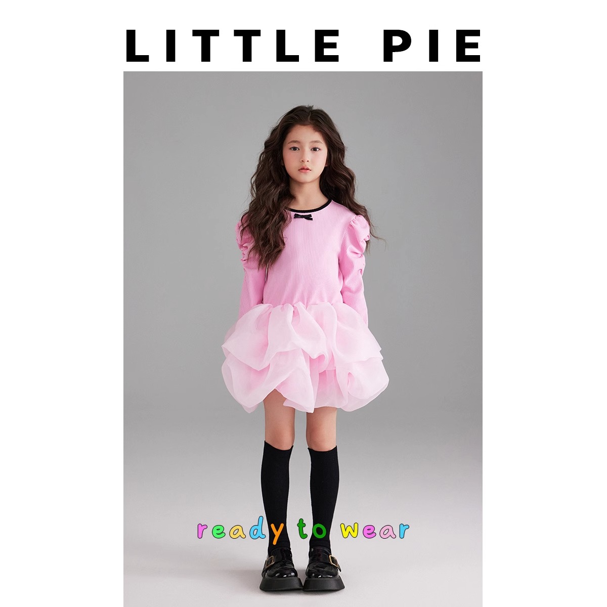 新款女童法式连衣裙波浪卷边蓬蓬裙打底针织公主裙秋生日礼服表演