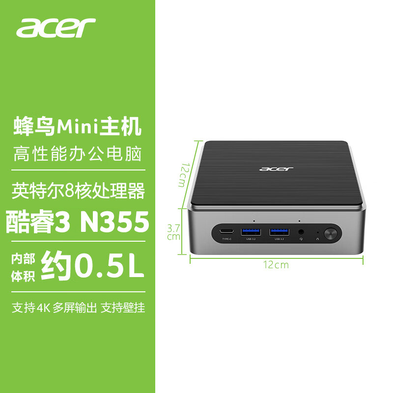 Acer/宏碁 蜂鸟mini迷你主机 英特尔酷睿3-N355/i5高性能台式电脑办公小机箱微型主机全套可壁挂多屏企业采购