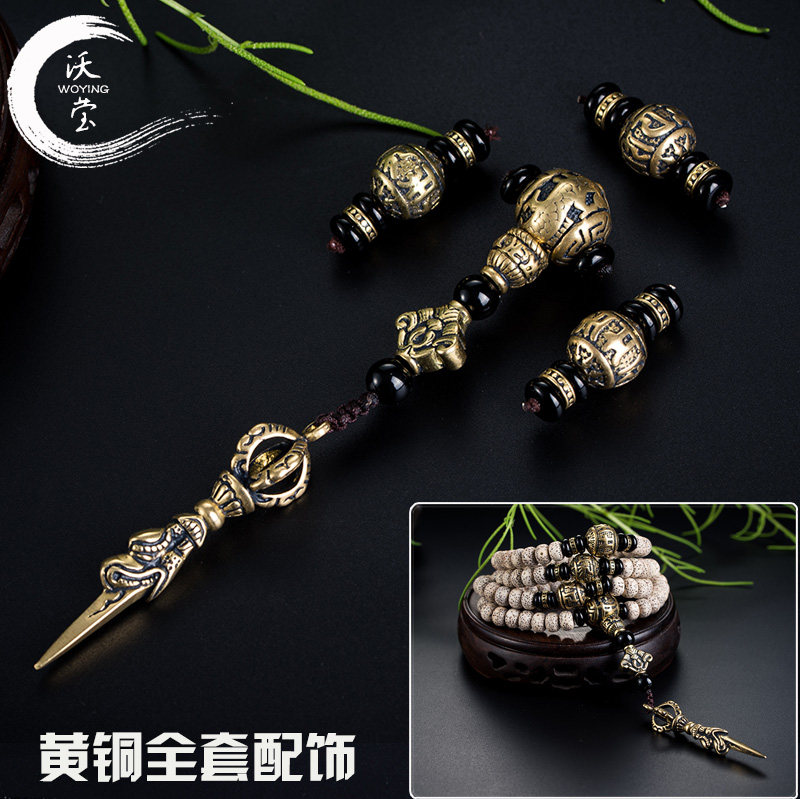 黄铜佛头三通配饰套装佛珠文玩菩提子金刚杵手串小号配饰项链套餐