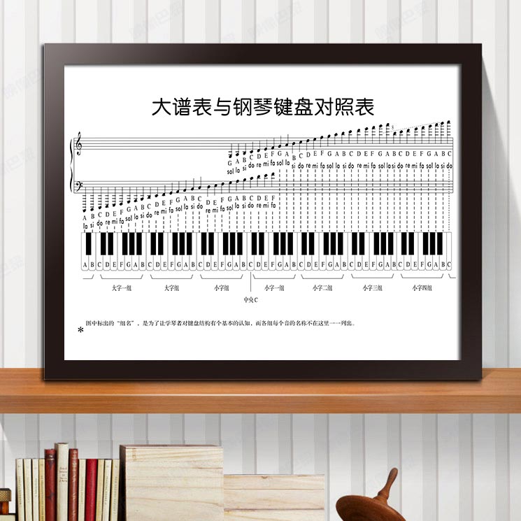 钢琴键盘音乐知识装饰画音符五线谱乐谱有框画琴行培训教室壁挂画