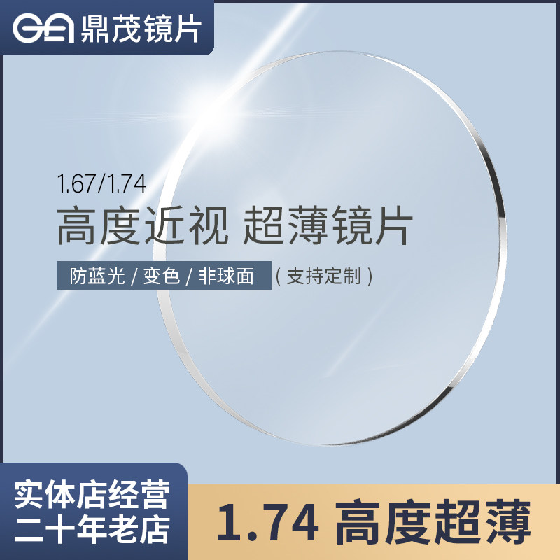 定制坊1.74超薄非球面0度防蓝光镜片 近视远视高散光高度数配镜片