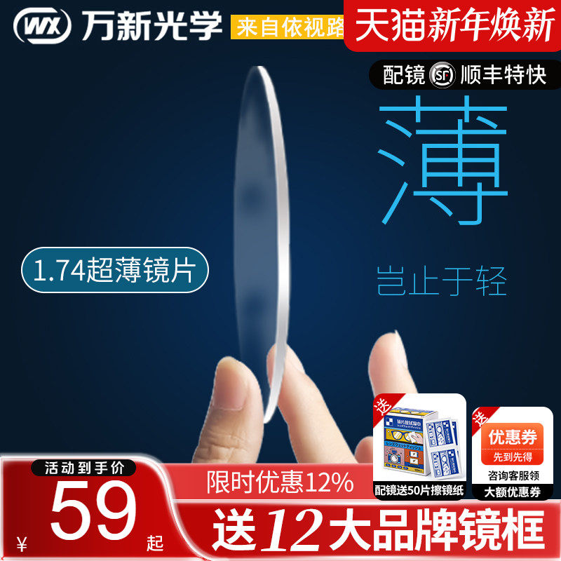 万新镜片非球面超薄高清1.74高度数近视1.67配眼镜官方旗舰