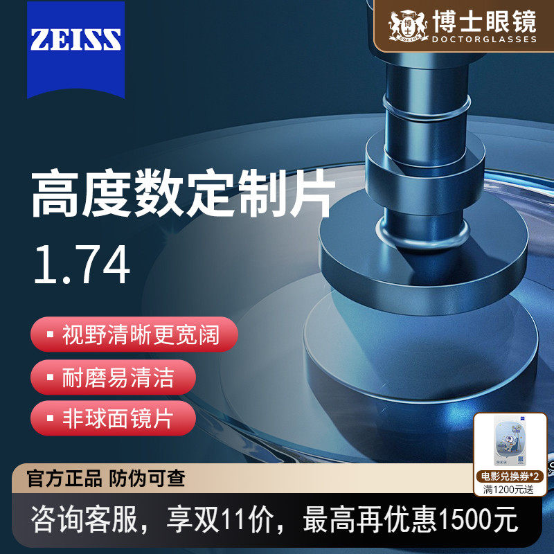 【定制片】蔡司泽锐高度近视超薄镜片定制男女眼镜1.74散光配镜