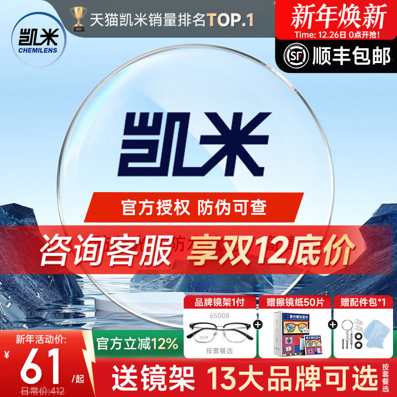 凯米镜片1.74配镜超薄U6防蓝光非球面U2高度数近视镜片网上配眼镜