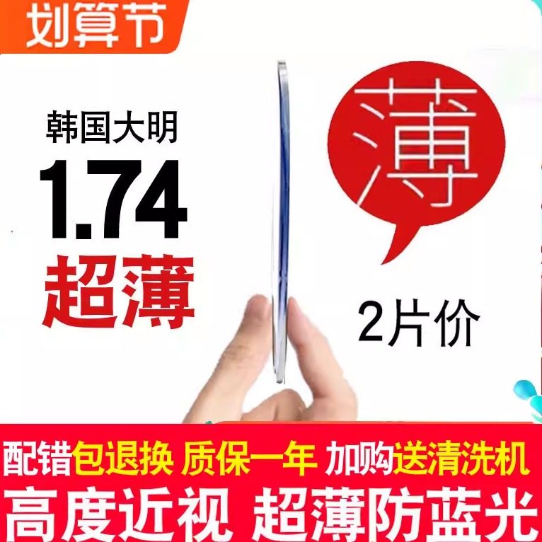 韩国大田大明阿米娅1.74防蓝光眼镜眼镜片1.67高度近视超薄镜片