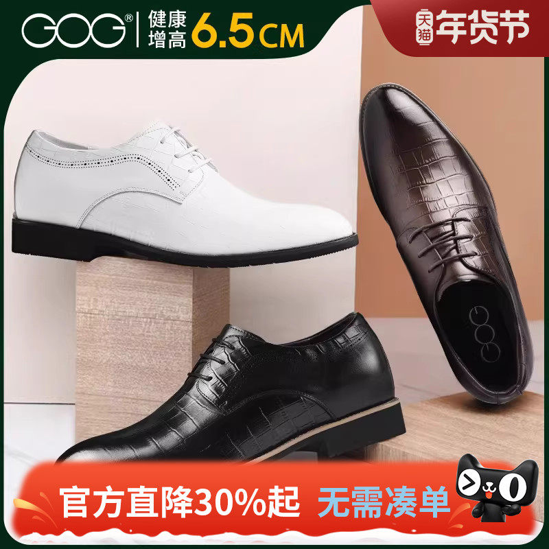 老人头男鞋内增高鞋6CM男士商务正装皮鞋真皮漆皮增高鞋头层牛皮