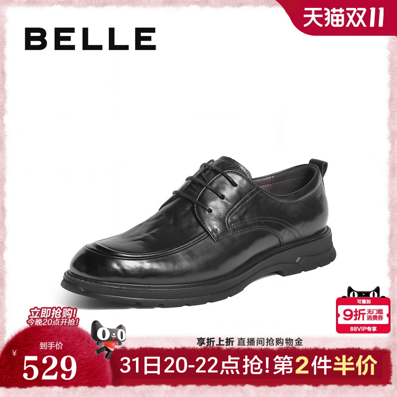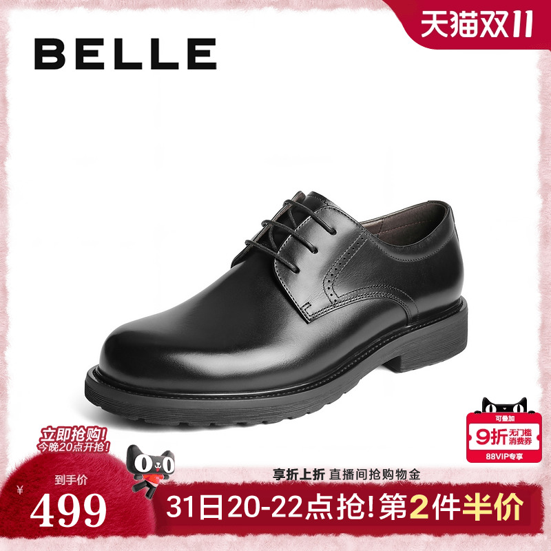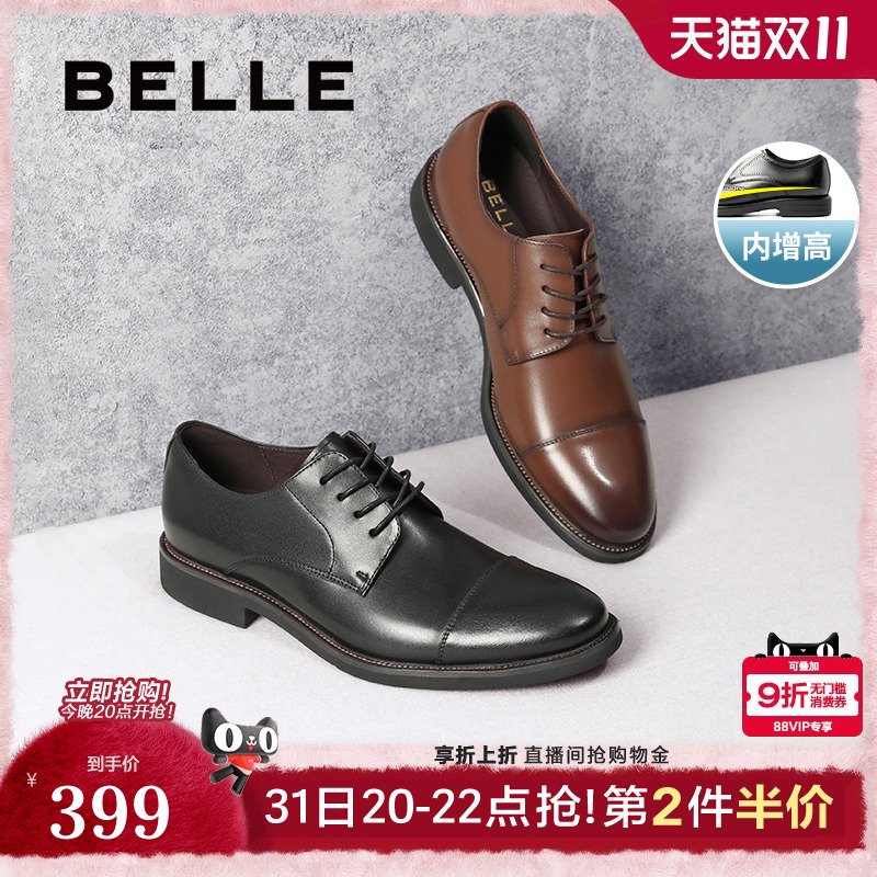 百丽男鞋商务正装鞋加绒婚鞋男士真皮鞋内增高通勤德比鞋A1095AM3