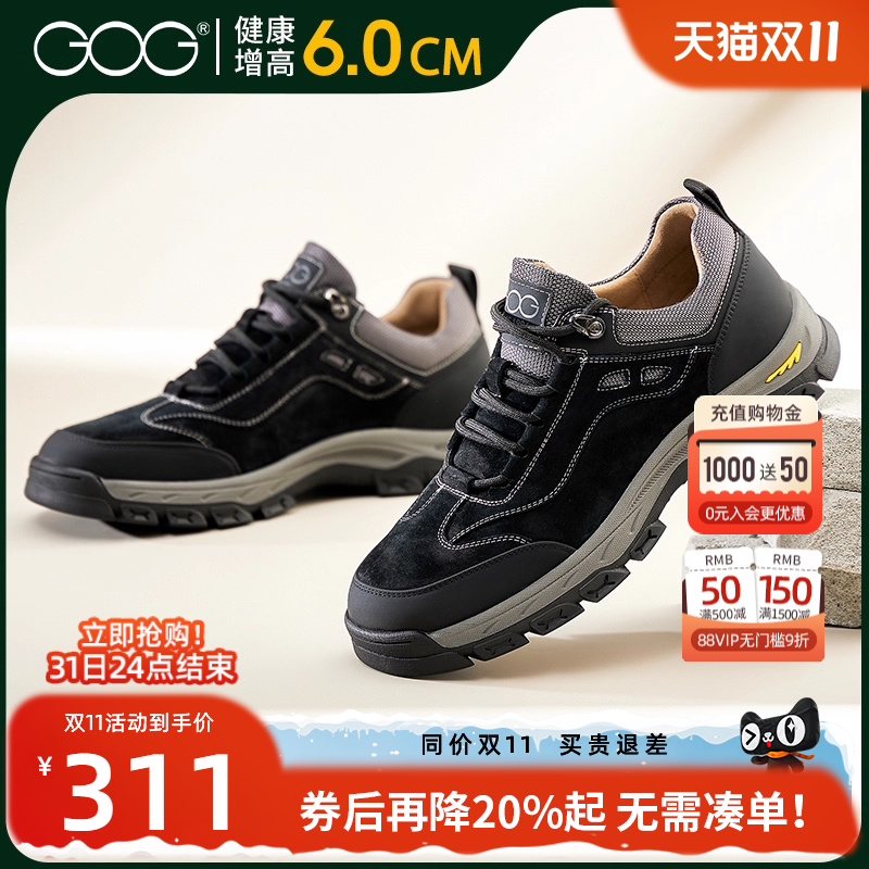 高哥增高鞋男士秋季新款登山鞋徒步鞋子户外工装男鞋内增高运动鞋