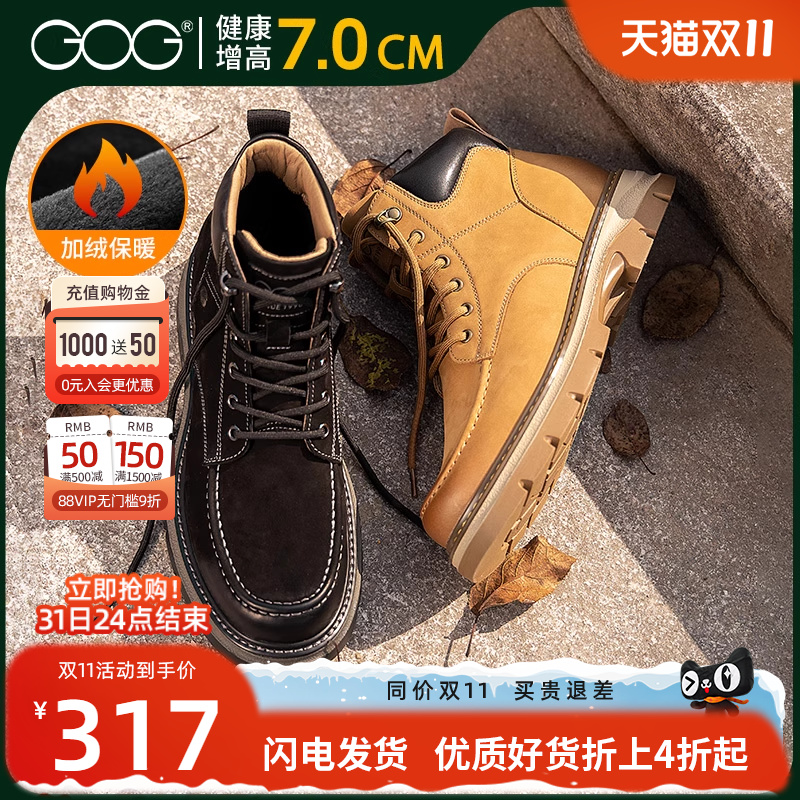 高哥增高鞋男工装靴休闲加绒保暖大黄靴时尚舒适男鞋内增高马丁靴