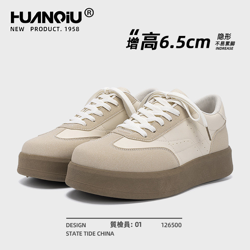 环球男鞋内增高德训鞋男款2025新款夏季透气薄款厚底学生轻便板鞋