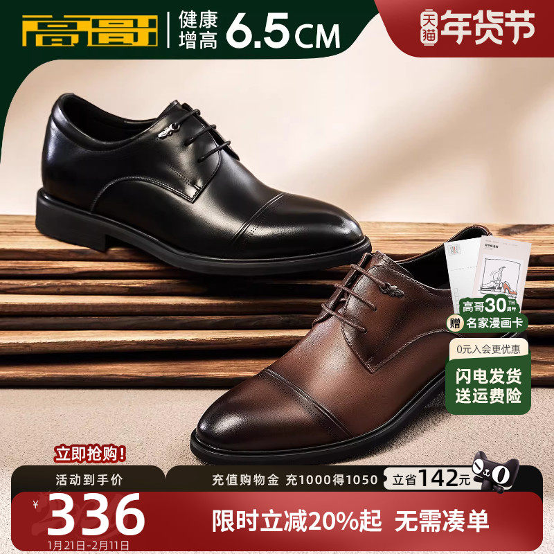 老人头男鞋内增高皮鞋秋冬加绒商务正装皮鞋男士真皮英伦新郎婚鞋