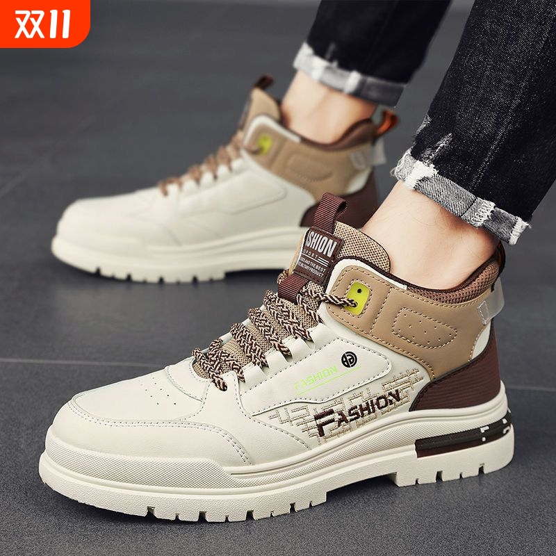 男鞋内增高马丁板鞋男士高帮秋季新款百搭运动休闲青少年小白潮鞋