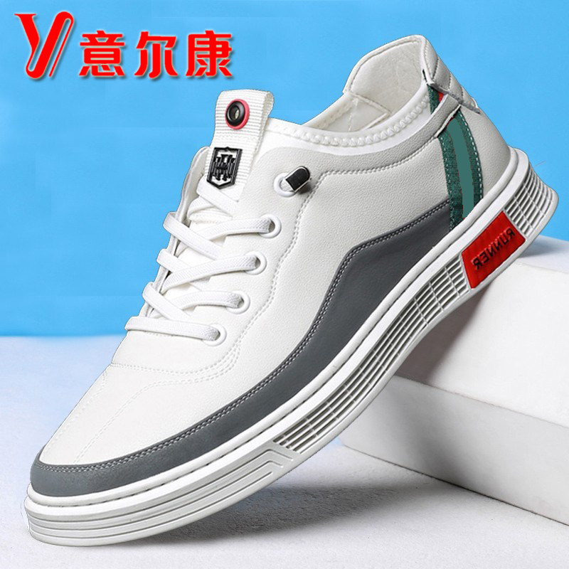 意尔康牌男鞋内增高百搭运动板鞋小白鞋男士软底透气真皮休闲皮鞋