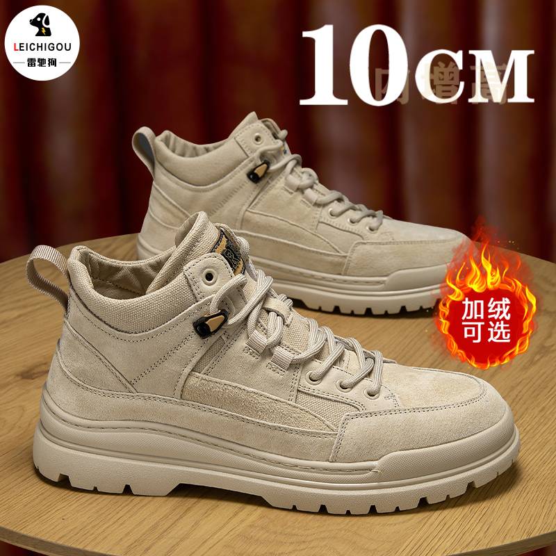 秋季爆款男鞋内增高10cm男士休闲马丁靴中帮工作潮鞋加绒保暖棉鞋