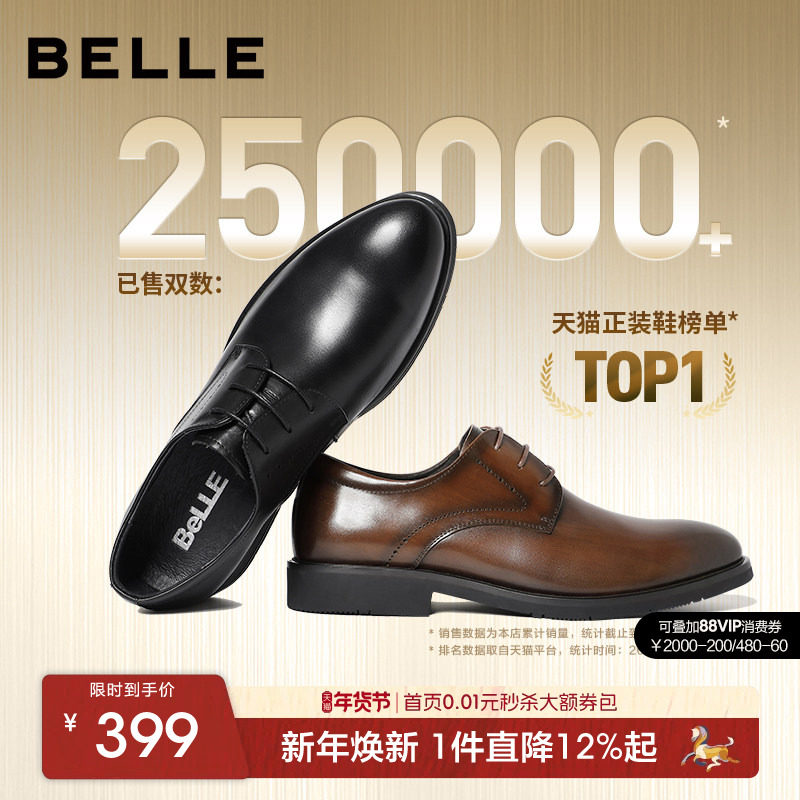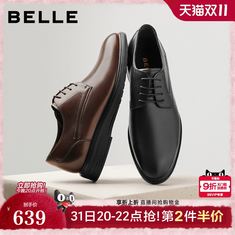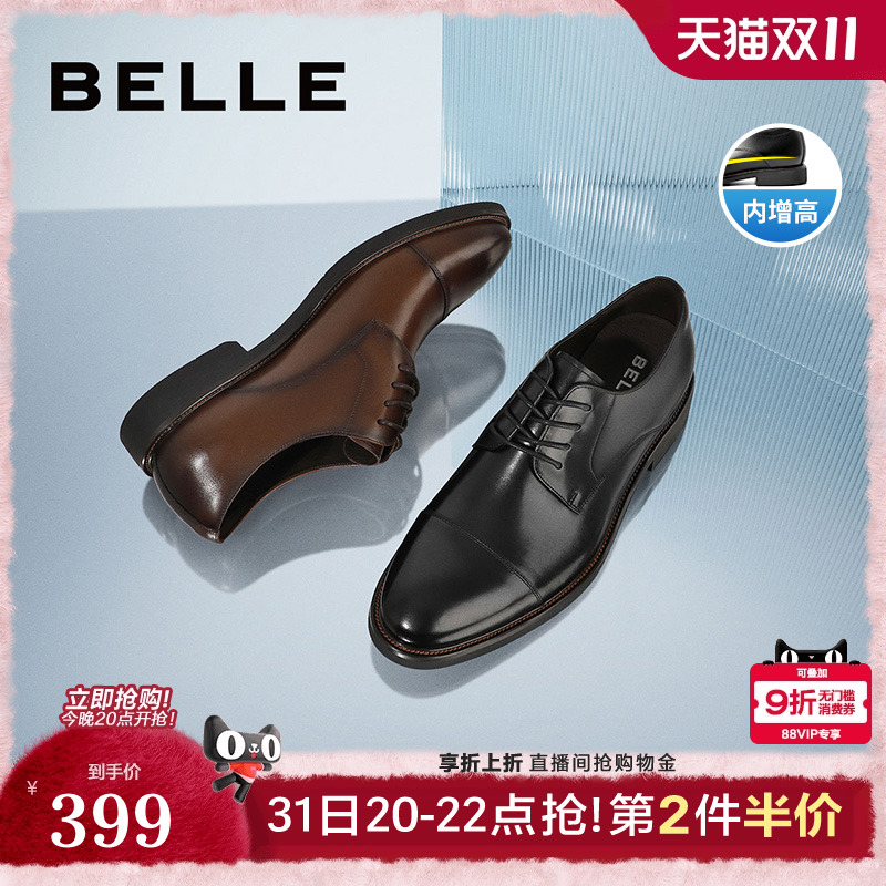 百丽男鞋内增高商务正装真牛皮鞋男士25秋新通勤新郎婚鞋A2030CM5