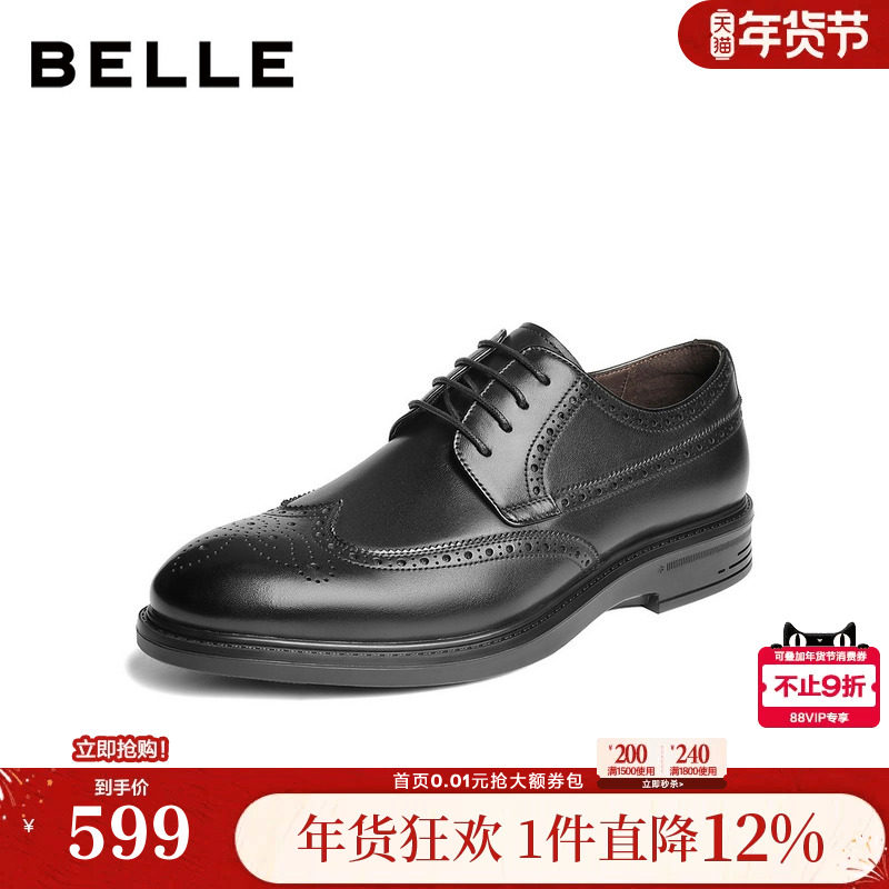 百丽男鞋内增高布洛克商务真牛皮鞋男士秋商场款正装婚鞋8TP01CM5