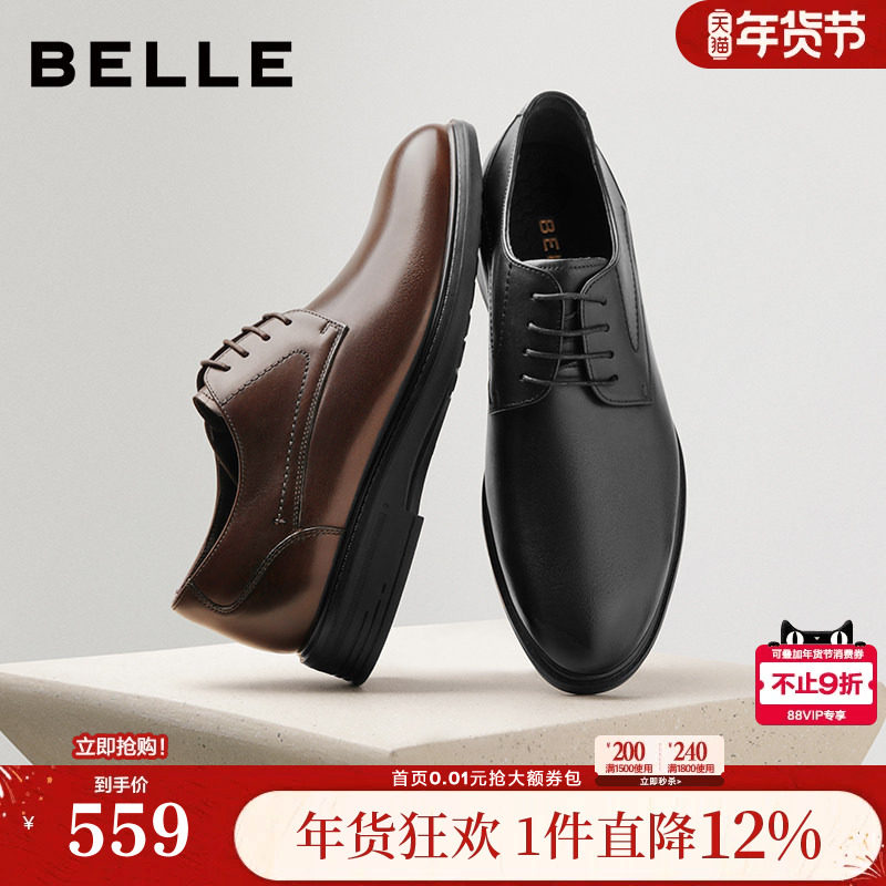 百丽男鞋商务正装结婚鞋男士真皮鞋内增高通勤牛津德比鞋A1095AM3