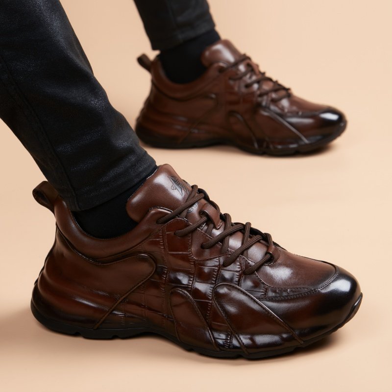 新款皮鞋男真皮商务正装鳄鱼纹男鞋内增高棕色软底英伦风休闲鞋子