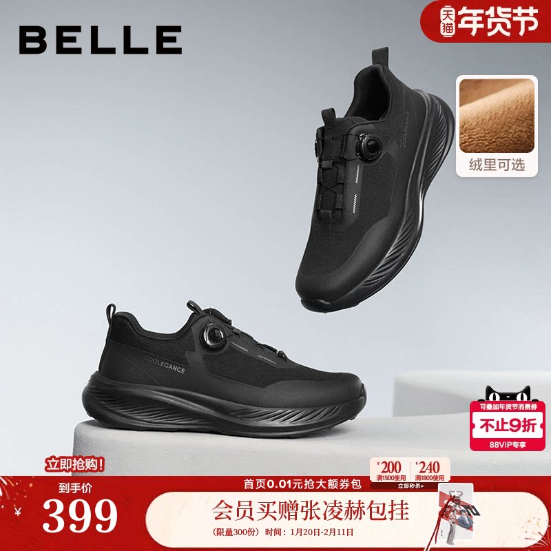 百丽男鞋加绒厚底内增高休闲健步鞋男士旋钮扣户外运动鞋A2048CM5