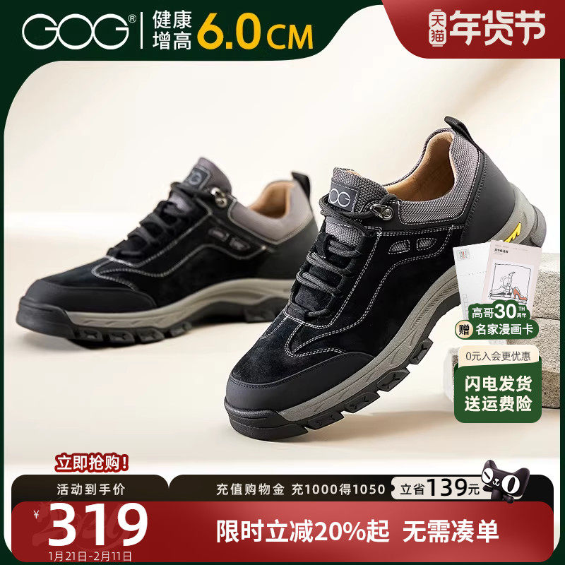 高哥增高鞋男士冬季新款登山鞋徒步鞋子户外工装男鞋内增高运动鞋