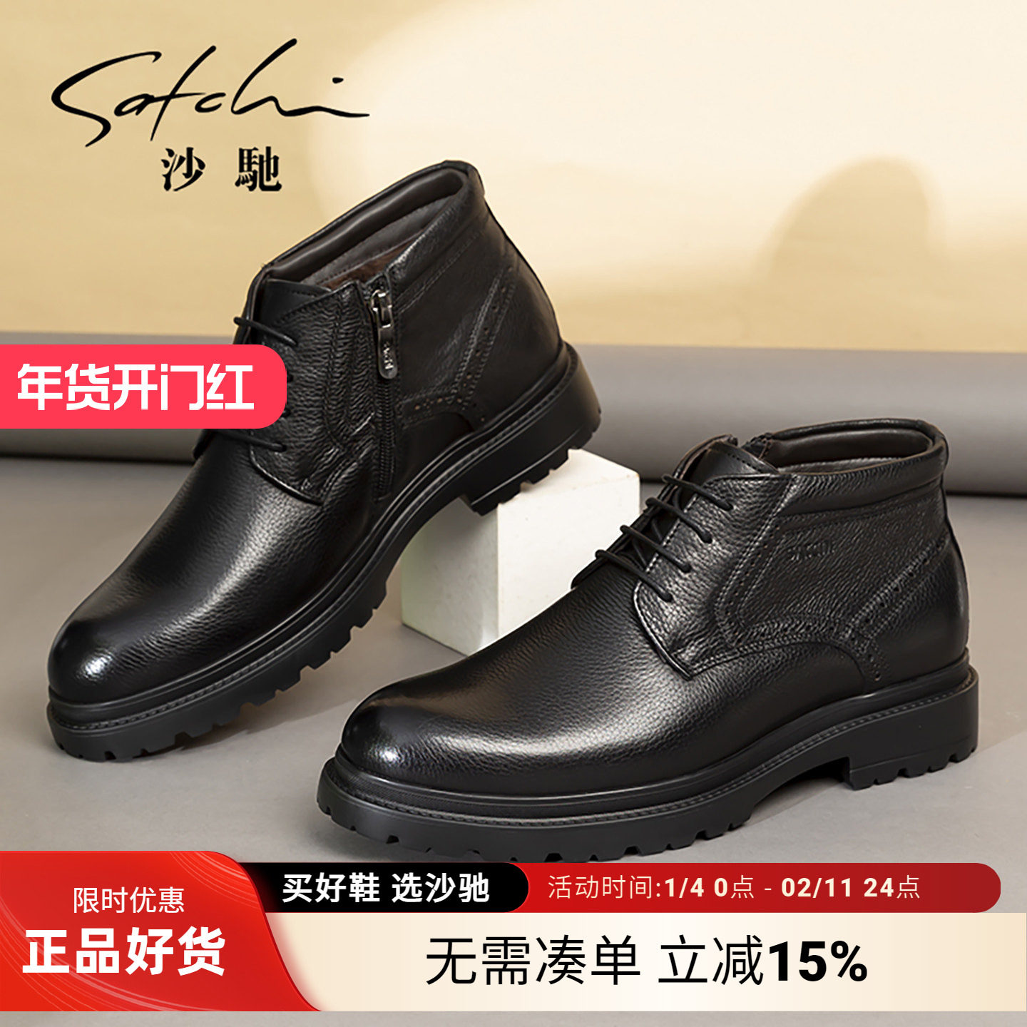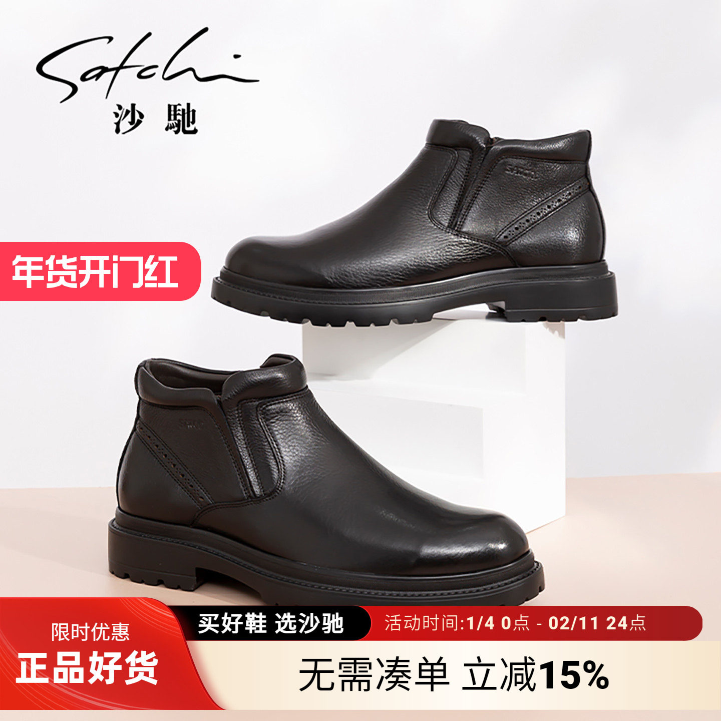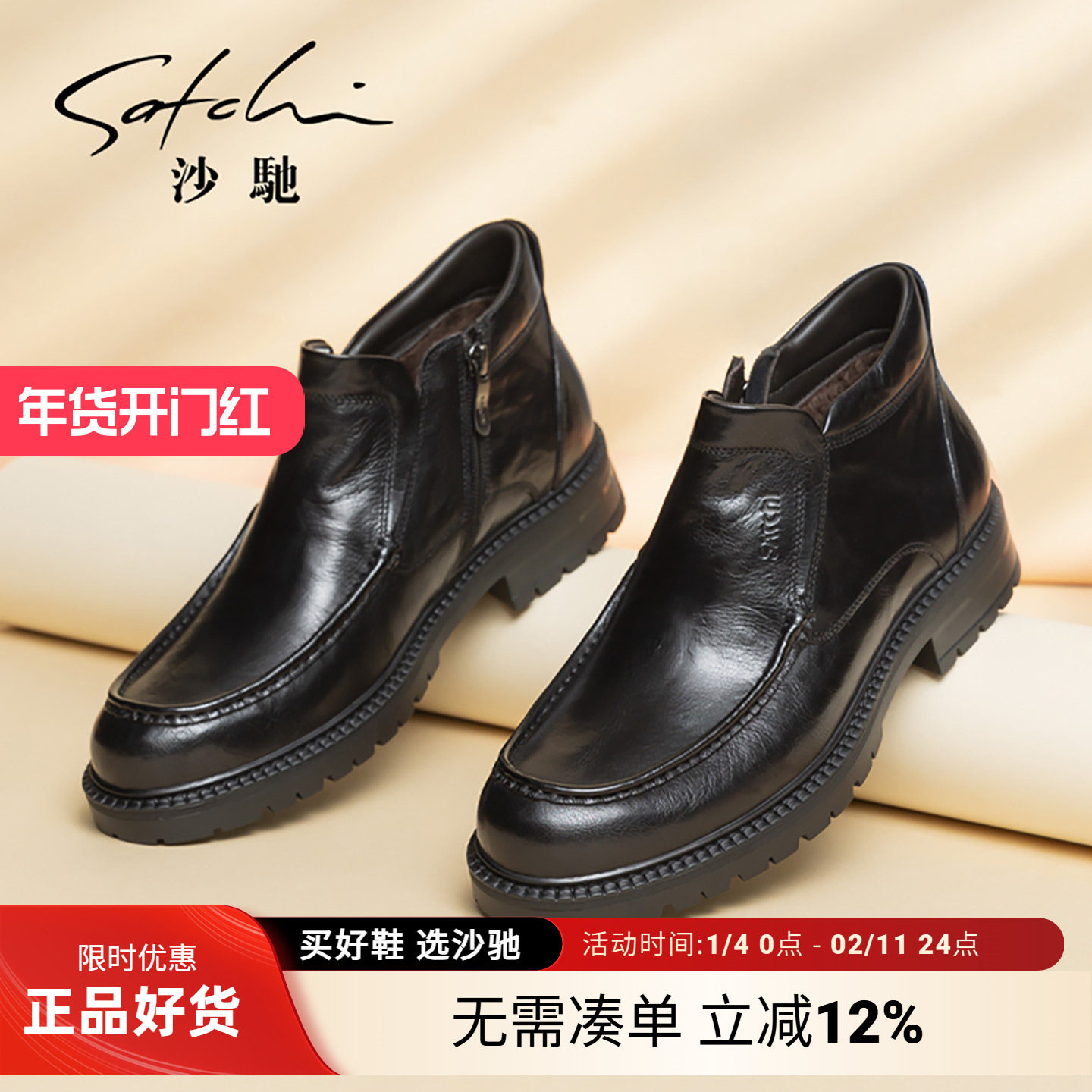 沙驰冬季男鞋男靴切尔西男士马丁靴男款加绒加厚保暖皮鞋牛皮棉鞋