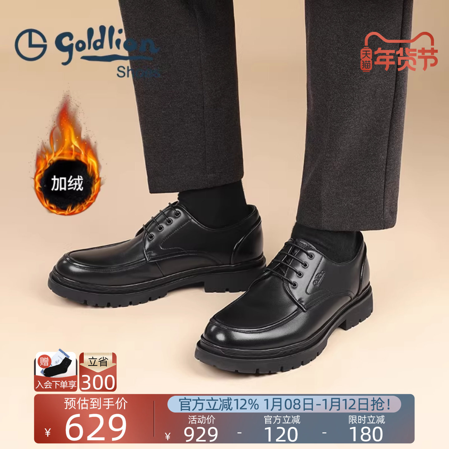 金利来男鞋 秋冬季新款商务正装加绒保暖皮鞋时尚厚底真皮德比鞋