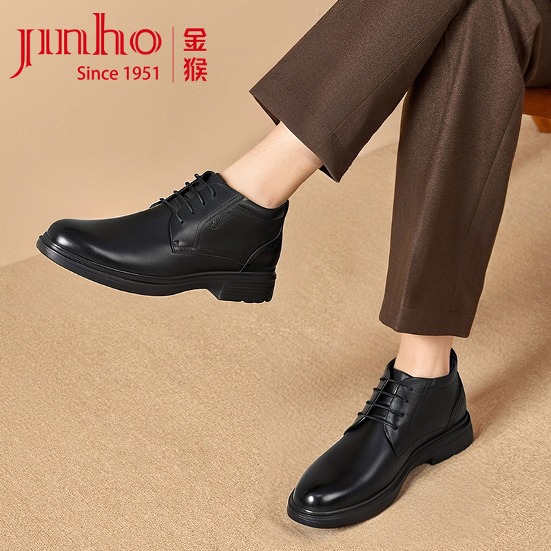 金猴男鞋2025冬季新款真皮高帮鞋商务正装系带加绒保暖皮鞋男