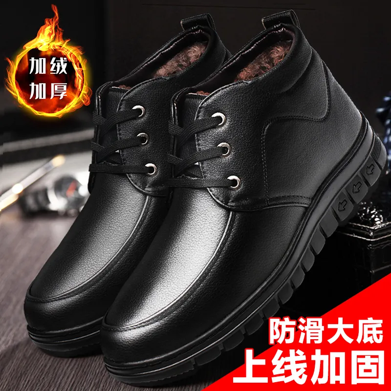 中老年男士保暖皮鞋冬季休闲加绒加厚爸爸鞋防滑高帮男棉鞋雪地靴