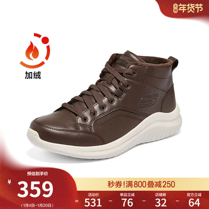 斯凯奇秋冬男皮质高帮鞋厚底增高休闲运动鞋舒适防寒棉鞋保暖皮鞋