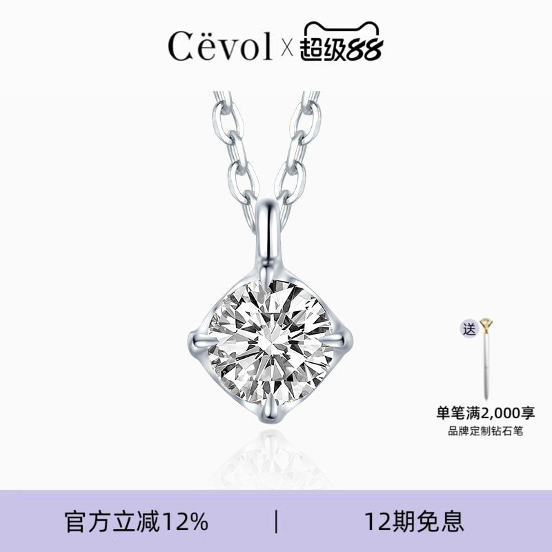 Cevol新奢钻石 经典系列圆钻铂金单钻石70分单钻项链女吊坠锁骨链