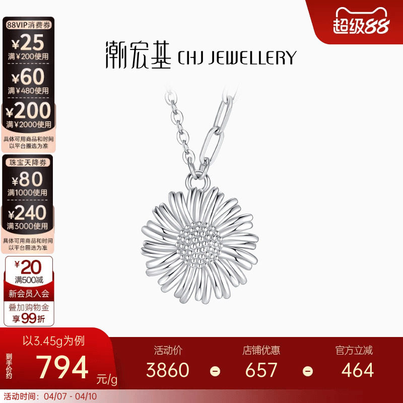 潮宏基铂雅向阳而生铂金项链PT950白金坠链锁骨链向日葵生日女
