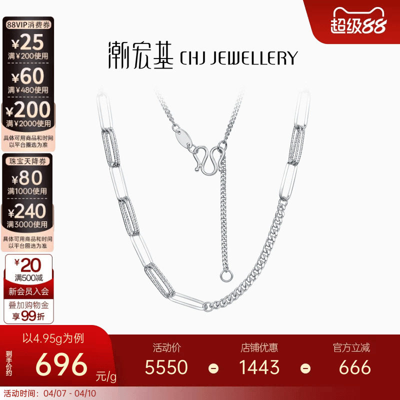 潮宏基铂雅环扣铂金项链PT950锁骨链颈饰百搭素链配链女生日礼物