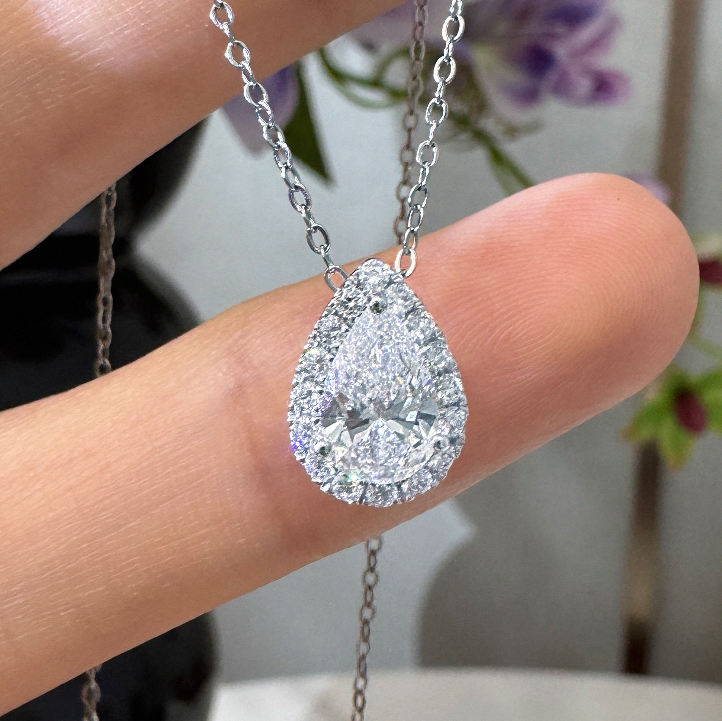 培育钻石PT950铂金满钻水滴形项链女轻奢高级感锁骨链钻石颈饰