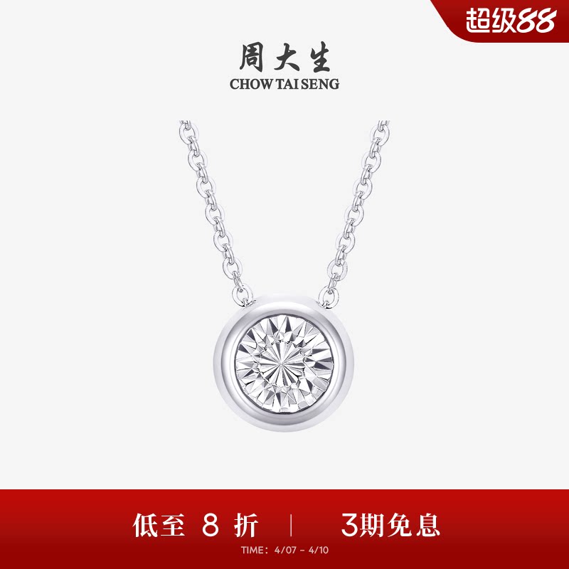 周大生铂金项链女PT950圆形泡泡吊坠O字锁骨套链生日礼物送女友