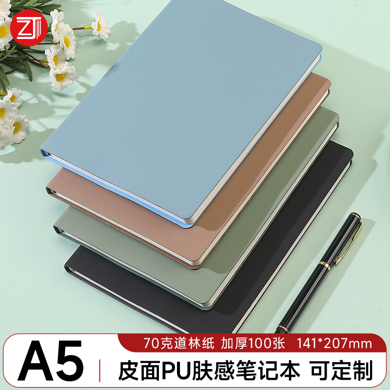 文艺精致软皮本办公商务笔记本定制pu记事本学生A5日记本肤感软皮笔记本子礼盒套装可定制封面印logo刻字