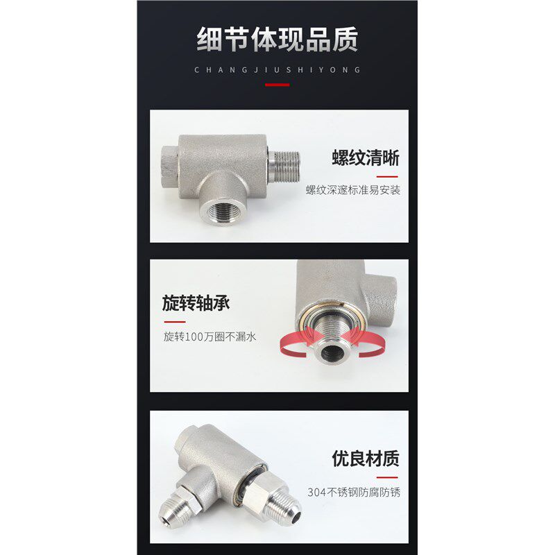 高压水枪不锈钢轴承防缠绕旋转快速接头洗车机适用绿田亿力洁普斯