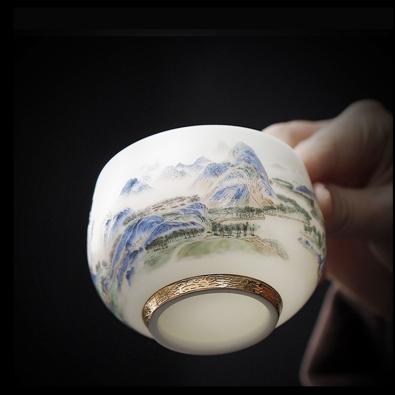汝窑办公杯茶杯景德镇天青色茶具送领导长辈生日礼品瓷器福圆对杯