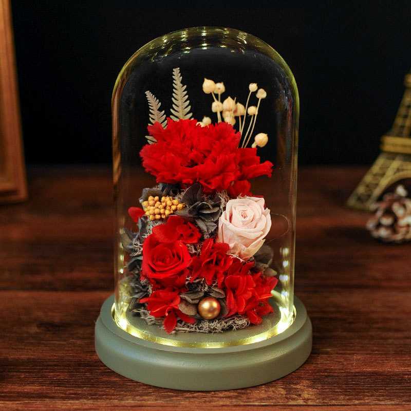 新款直销永生花康乃馨玻璃罩成品送妈妈送长辈生日礼品真花摆件跨