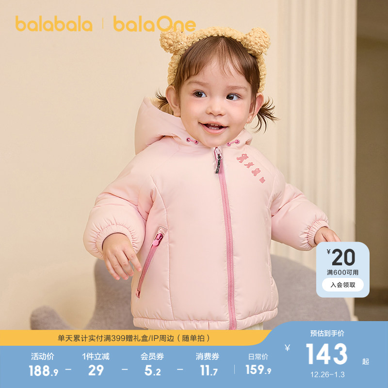 巴拉巴拉童装儿童外套宝宝棉服女童男童新款棉袄2025冬装三防保暖